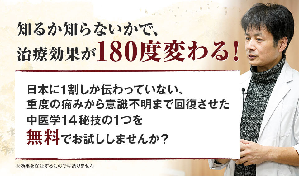 重度の痛みから意識不明患者まで”手技だけで”回復させてきたのがこの「中医学」。